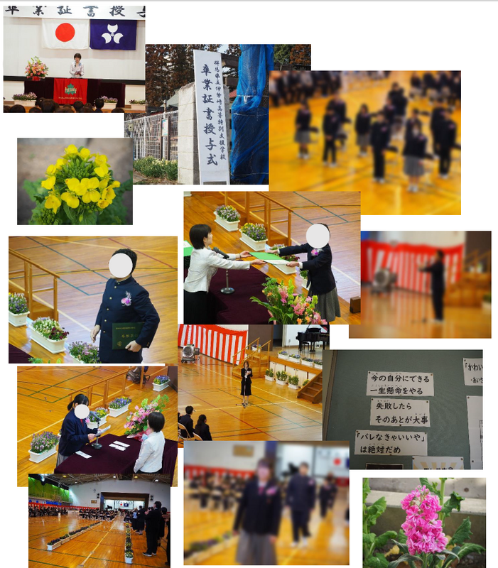 本校高等部の生徒たちが、3年間の学びを終え卒業の日を迎えました。教科のの学習や作業学習、行事などさまざまな経験を重ねる中で、一人一人が自分の力を伸ばしてきました。仲間とともに過ごした大切な思い出を胸に、それぞれが新しい一歩を踏み出します。これからの活躍を心から応援しています。