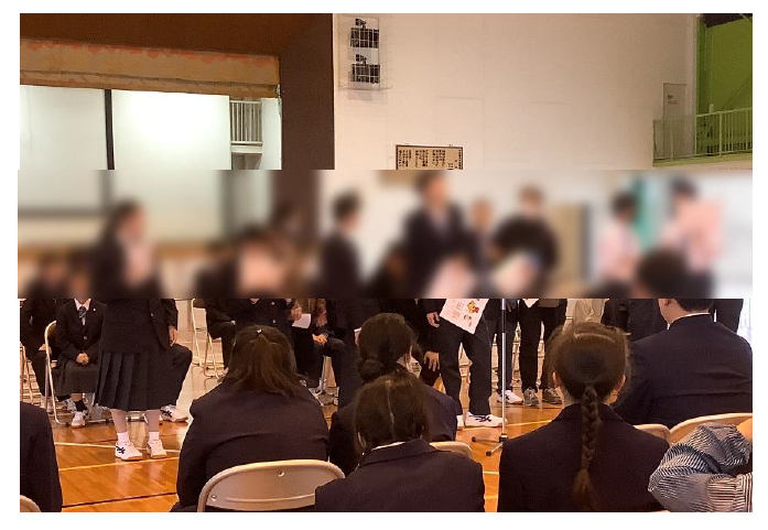 紹介を行いました。先生紹介、歌あり、笑いありの趣向を凝らした 発表 で、温かく新入生を迎えました 。1 年生は 「緊張する」と発言した生徒もいましたが、自分の発表の時には先輩の前で、 名前やこれから頑張りたいことなどを 大きな声で言うことができ、 頼もしく感じました。和やかな雰囲気で 1 年生と 2・3年生 との距離が 、 グッと 近くなった 瞬間でした。