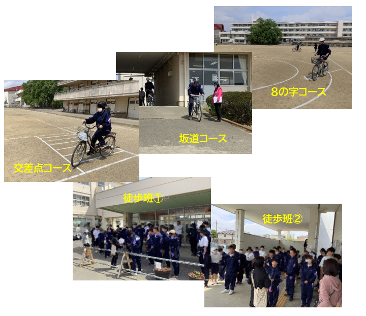 4月14日(火)に第1回交通安全教室を行いました。全校生徒が徒歩班、自転車班に分かれ、徒歩班では道路の歩き方や横断歩道の渡り方などDVDを見て学び、学校から境町駅まで実際に歩いて確認しました。自転車班では校庭に描かれた仮設コース(交差点コース・8の字コース・坂道コース)を実際に走行し交通ルールや事故に遭ったときの対応などについて学びました。